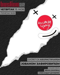 Pisac i publicista Jovan Zafirović biće gost kulturnog programa „Bastiona“ u Leposaviću u četvrtak, 13. novembra. Početak programa zakazan je za 19.00 časova, a pored autora, učestvovaće i Ivana Vanovac i Aleksandar Dunđerin.