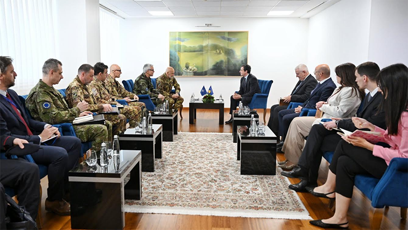 Premijer Kosova Aljbin Kurti primio je delegaciju na čelu sa predsednikom Vojnog komiteta NATO-a, admiralom Đuzepeom Kavo Dragoneom, i predsednikom Vojnog komiteta Evropske unije, generalom Šonom Klensijem.
