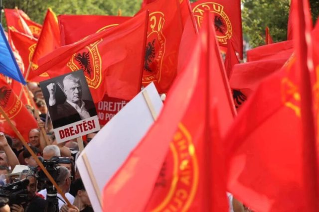 Organizatori protesta ističu da je okupljanje izraz neslaganja sa, kako navode, “nepravdama” koje se čine bivšim čelnicima OVK tokom sudskog procesa u Hagu.